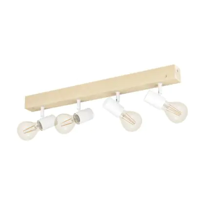 Eglo Ceiling Light Townshend 3 Wood Steel White | IP20 - Suitable for 4x E27