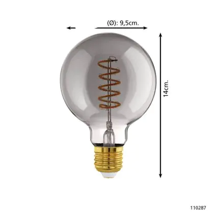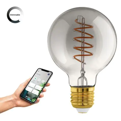 Eglo Connect.Z Smart LED Globe E27 Filament Smokey 4W 150lm - 820 Extra Warm White | Dimmable - Replaces 15W