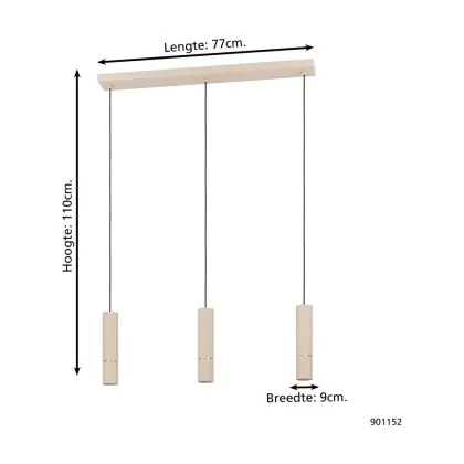 Eglo Pendant Caminia Steel Sanded 3x4.7W 3x345lm - 830 Warm White | IP20 - Incl. 3x GU10