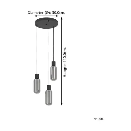 Eglo Pendant Maione Steel Black | IP20 - Suitable for 3x E27