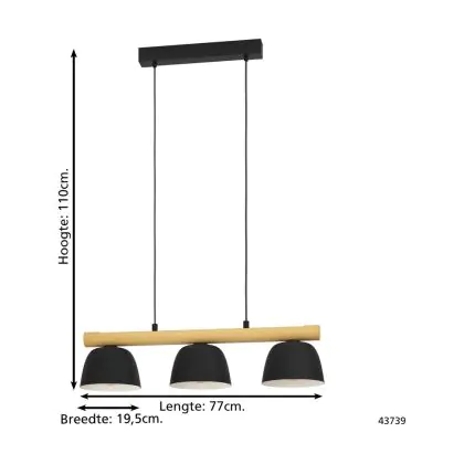Eglo Pendant Sherburn Steel Wood Black Brown | IP20 - Suitable for 3x E27