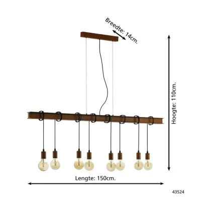 Eglo Pendant Townshend 4 Steel Brown Black | IP20 - Suitable for 8x E27