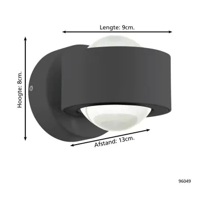 Eglo Wall Light Ono 2 Aluminium Anthracite 2.5W 250lm - 830 Warm White | IP20