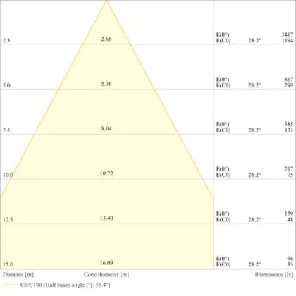 A beam angle indicates the angle of the light beam coming from a light source. The smaller the radiation angle in degrees (D), the narrower the beam angle.
