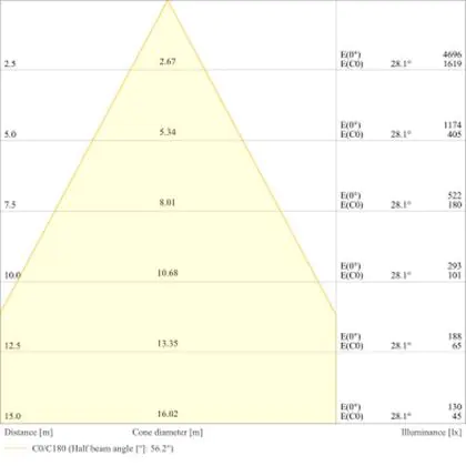 A beam angle indicates the angle of the light beam coming from a light source. The smaller the radiation angle in degrees (D), the narrower the beam angle.