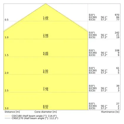 ![]() The colour code is a combination of colour rendering (CRI) and light colour (Kelvin). The first number indicates the colour rendering (1 = very poor colour rendering, 9 = maximum colour fastness). The second and third number contains the light colour. Example: the colour code 830 consists of good colour rendering (8) and warm white light (3000K). |