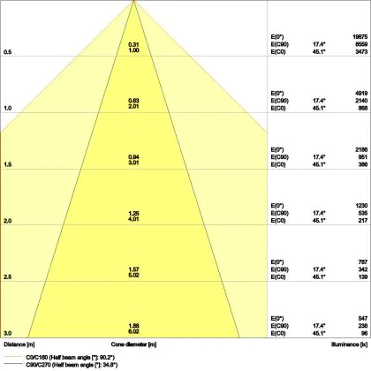 ![]() The colour code is a combination of colour rendering (CRI) and light colour (Kelvin). The first number indicates the colour rendering (1 = very poor colour rendering, 9 = maximum colour fastness). The second and third number contains the light colour. Example: the colour code 830 consists of good colour rendering (8) and warm white light (3000K). |