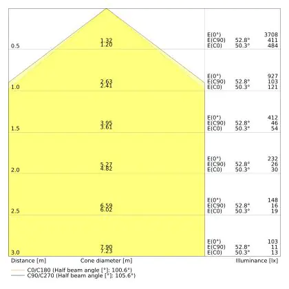 The Luminous Efficacy (lm/W) indicates how efficiently a light source uses energy. We divide the number of lumens by the wattage. The higher the number, the more efficient a product is in terms of energy consumption. LED lighting has a considerably higher lumen/Watt ratio than conventional lighting.
