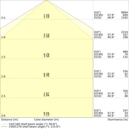 ![]() The colour code is a combination of colour rendering (CRI) and light colour (Kelvin). The first number indicates the colour rendering (1 = very poor colour rendering, 9 = maximum colour fastness). The second and third number contains the light colour. Example: the colour code 830 consists of good colour rendering (8) and warm white light (3000K). |