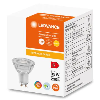 Ledvance Superior Reflector LED GU10 Spot Clear 3.7W 230lm - 927 Extra Warm White | Dimmable - Best Colour Rendering