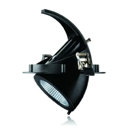 A fixture with a tiltable design makes it possible to direct the lighting specifically at an object or surface. This can play a particularly important role in shops (putting a new collection in the spotlight) or galleries (accentuating works of art). It can also influence the purchasing behaviour or interpretation of visitors.