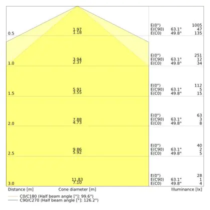 ![]() The colour code is a combination of colour rendering (CRI) and light colour (Kelvin). The first number indicates the colour rendering (1 = very poor colour rendering, 9 = maximum colour fastness). The second and third number contains the light colour. Example: the colour code 830 consists of good colour rendering (8) and warm white light (3000K). |